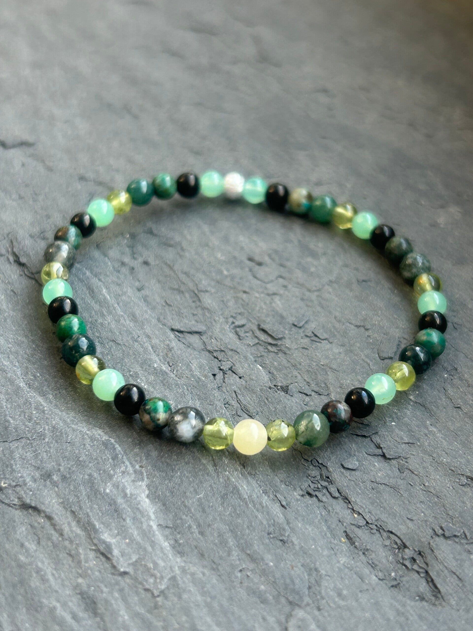 Heilsteine (Link zu Beschreibung und Wirkung): Calcit gelb, Chrysokoll, Chrysopras, Gagat, Moosachat, Peridot