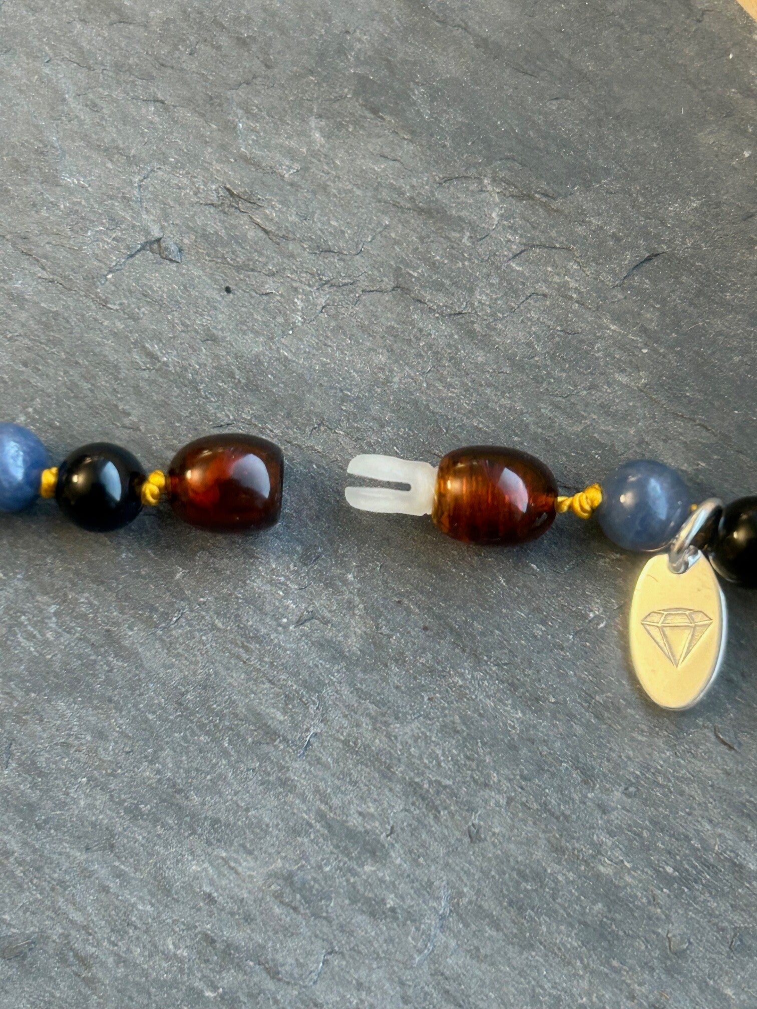 Heilsteine (Link zu Beschreibung und Wirkung): Bernstein, Moosachat, Onyx, Saphir blau