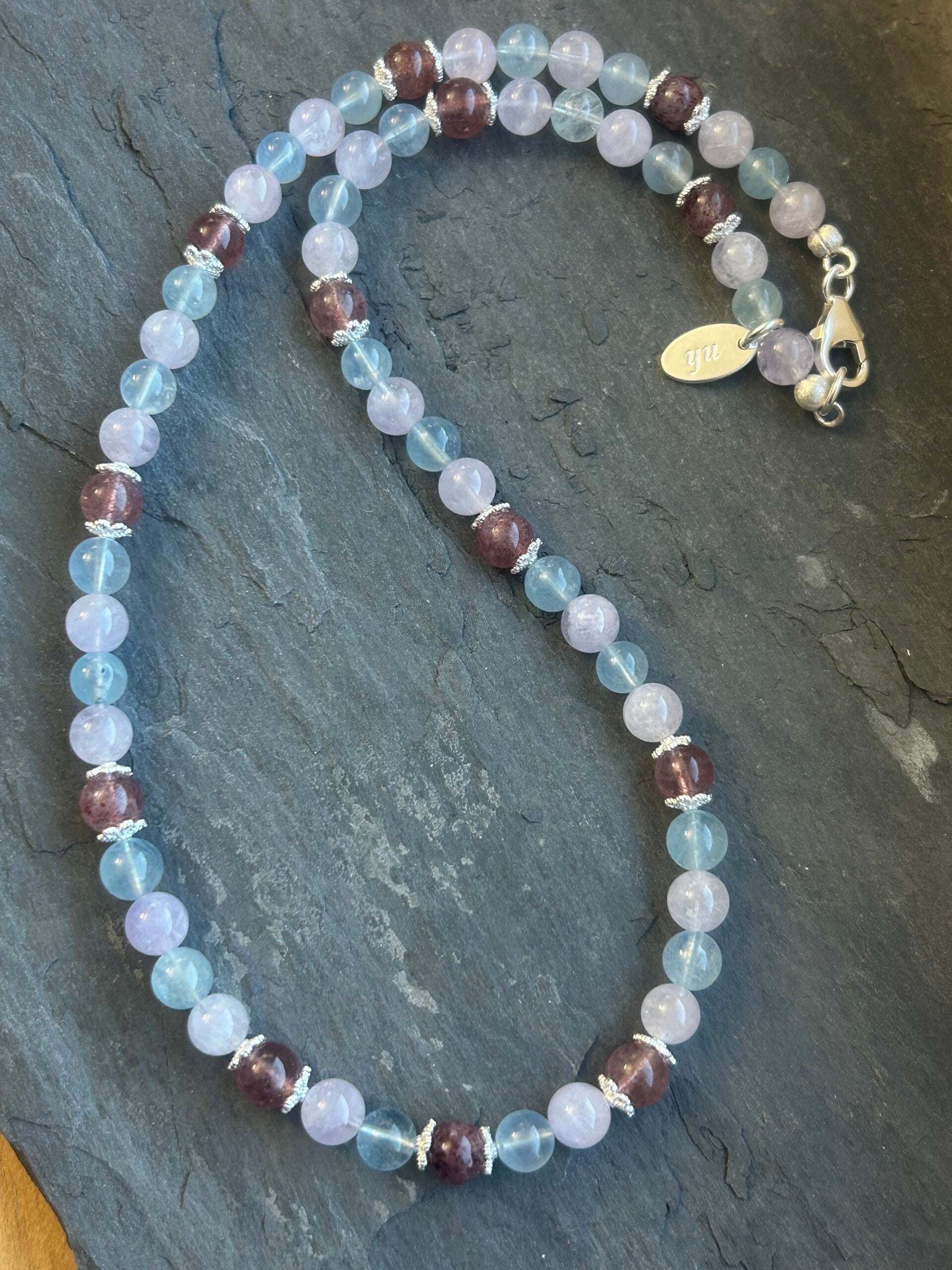 Halskette - Amethyst hell, Aquamarin & Erdbeerquarz (H589)
