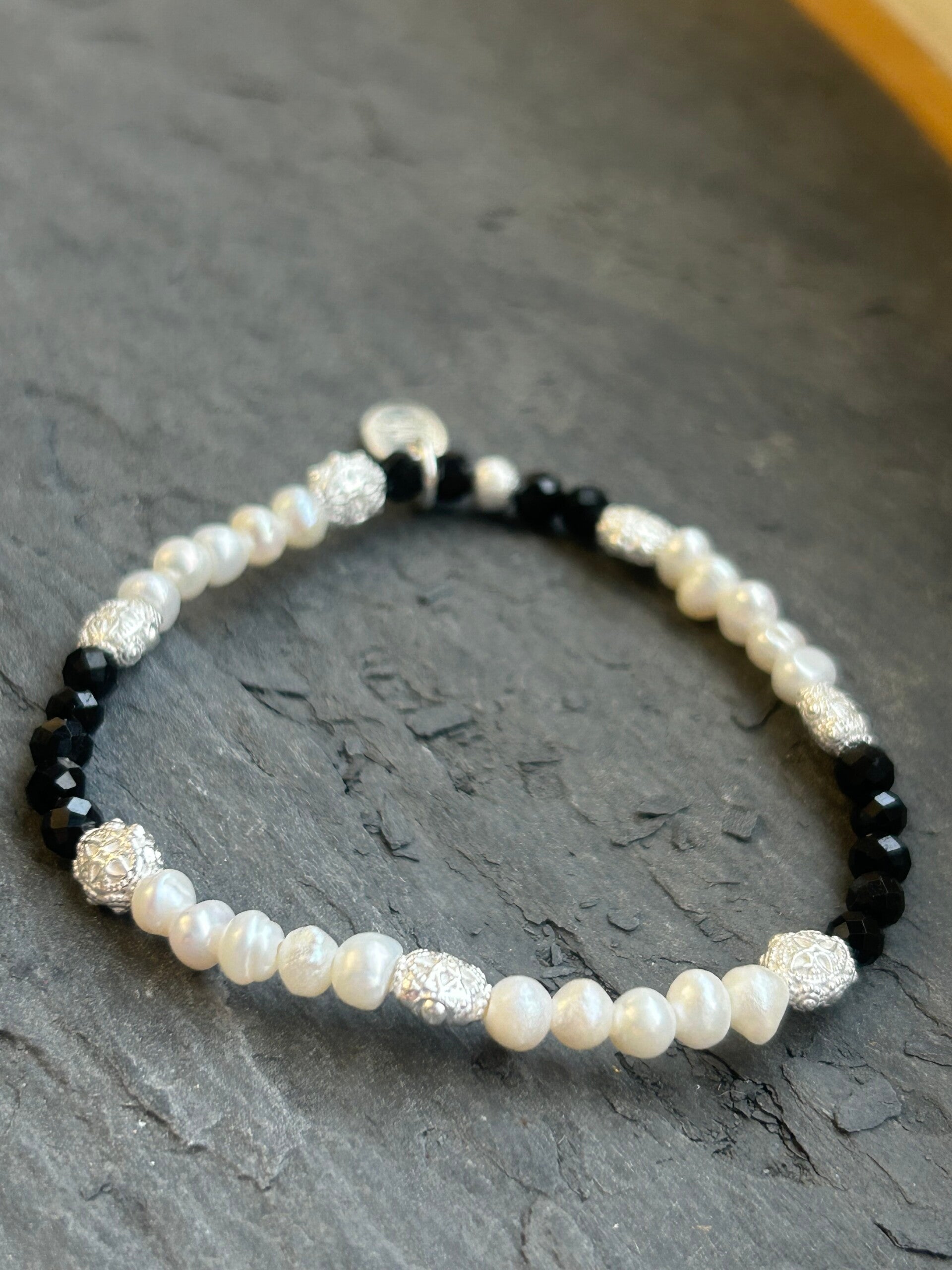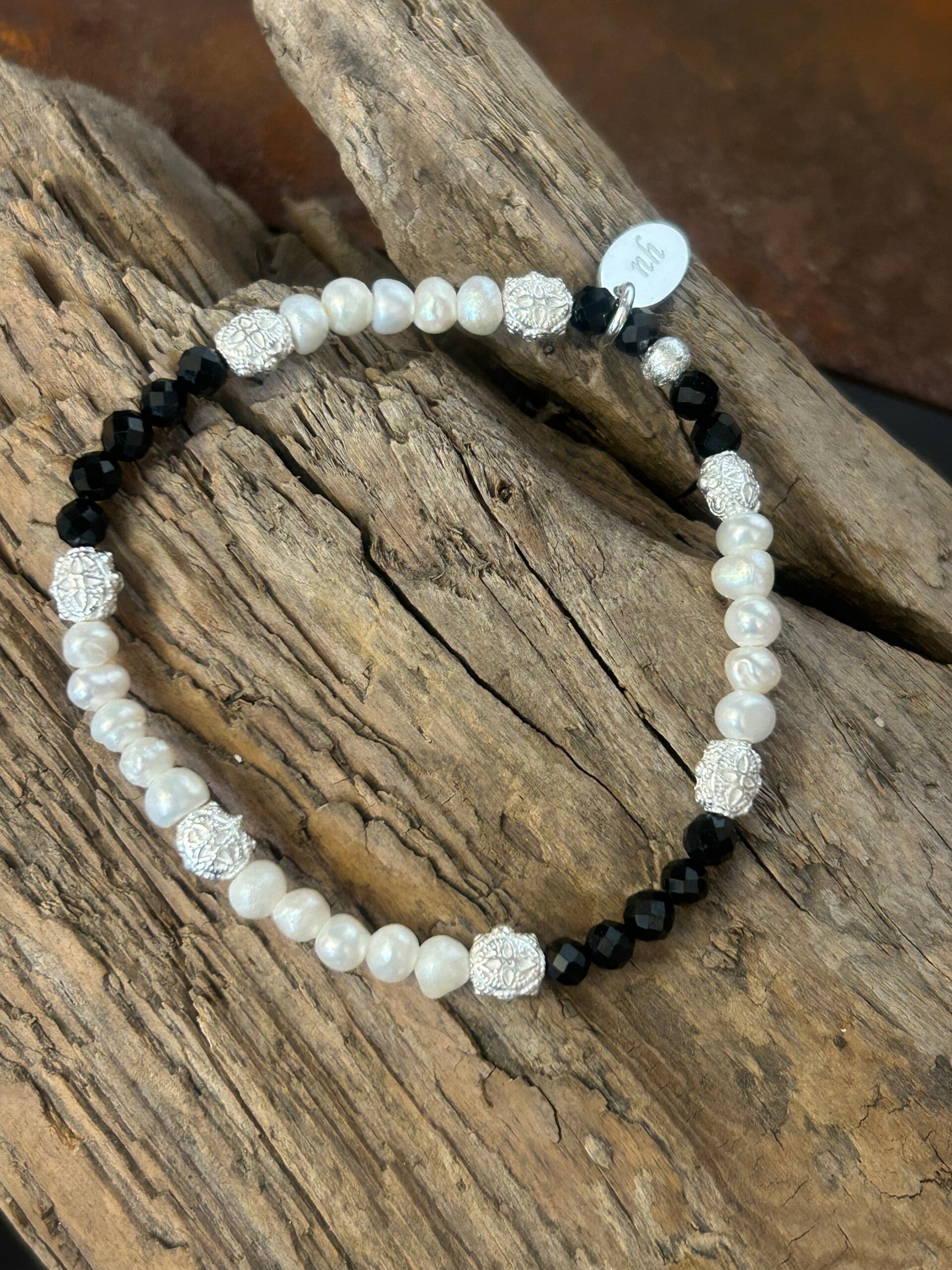 Hinweis: mit Stretch-Band (Länge 15 - 22 cm wählbar); Silber 925 verzierte Elemente; Kugeln 4mm und 4mm facettiert
