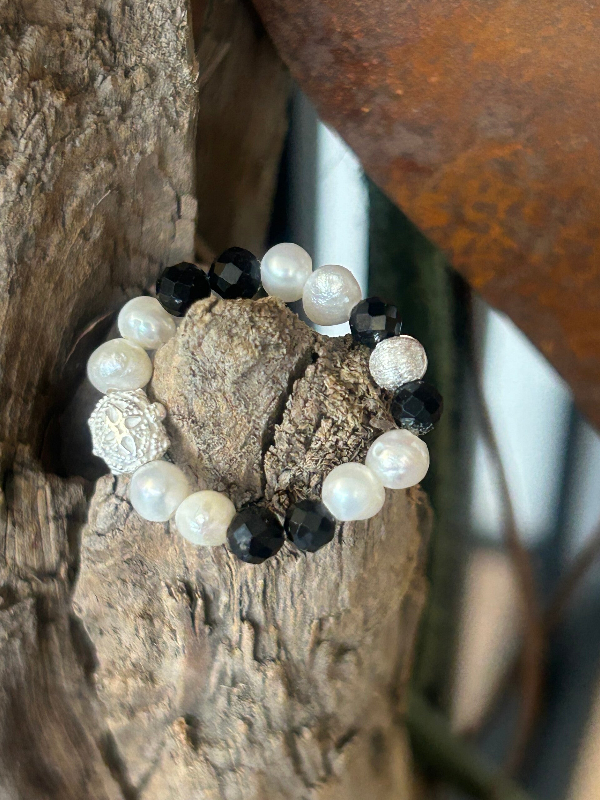 Fingerring - Süsswasserperle & Turmalin Schörl (R112)