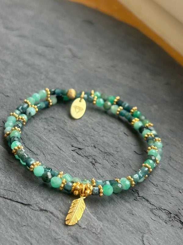 Wickelarmband (2-fach) - Indigolith & Smaragd (A810)