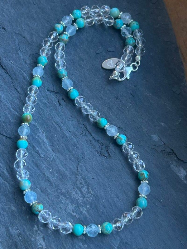 Halskette - Aquamarin, Bergkristall & Türkis (H605)