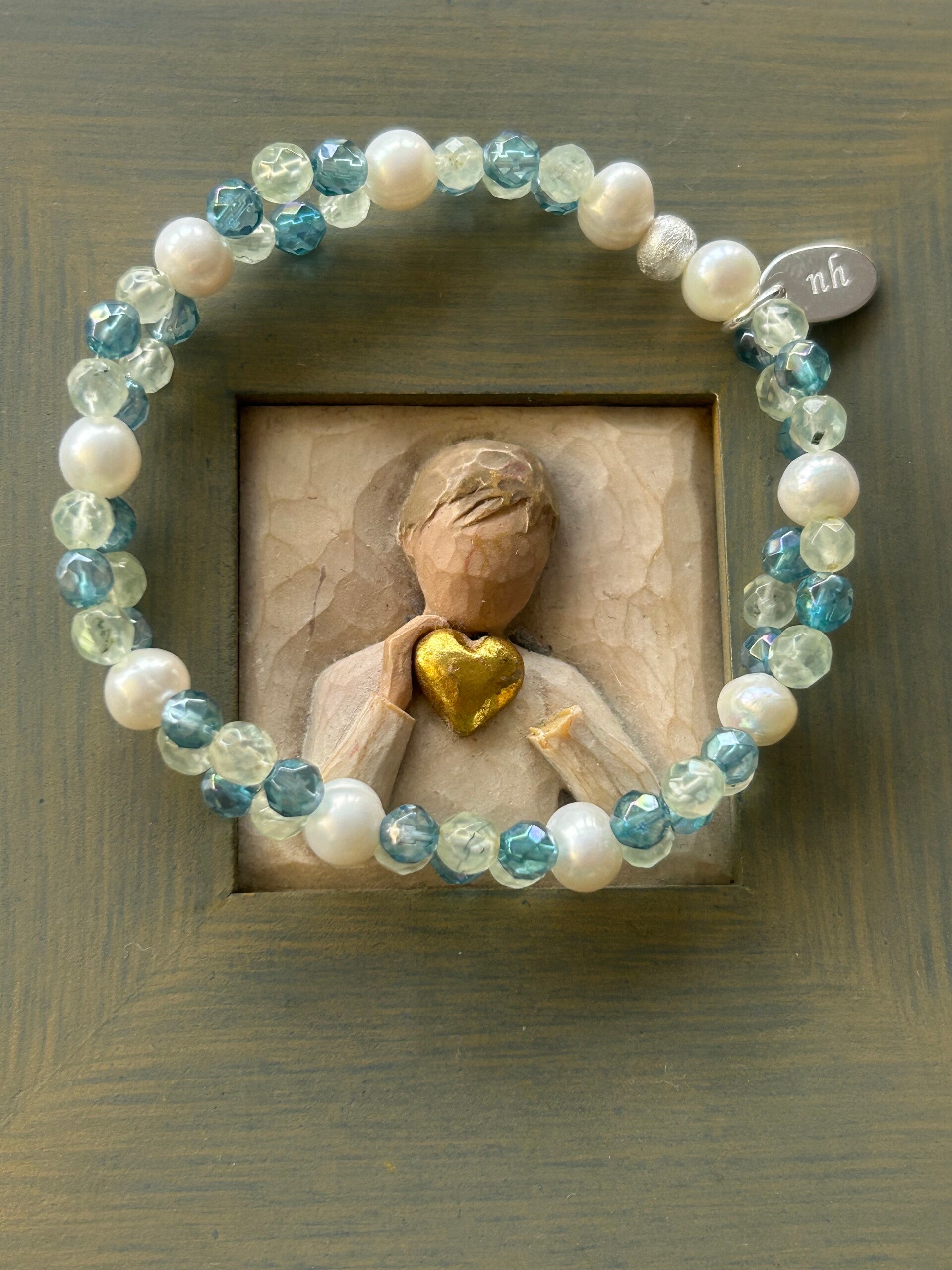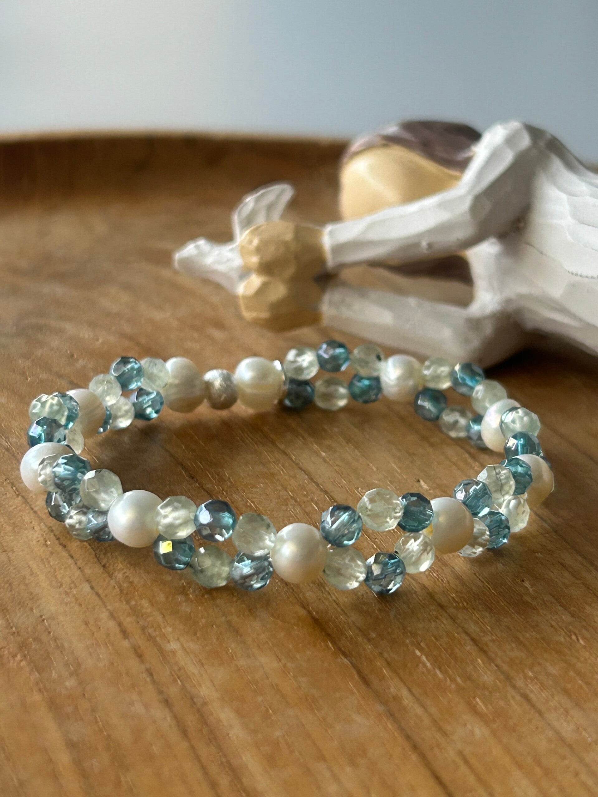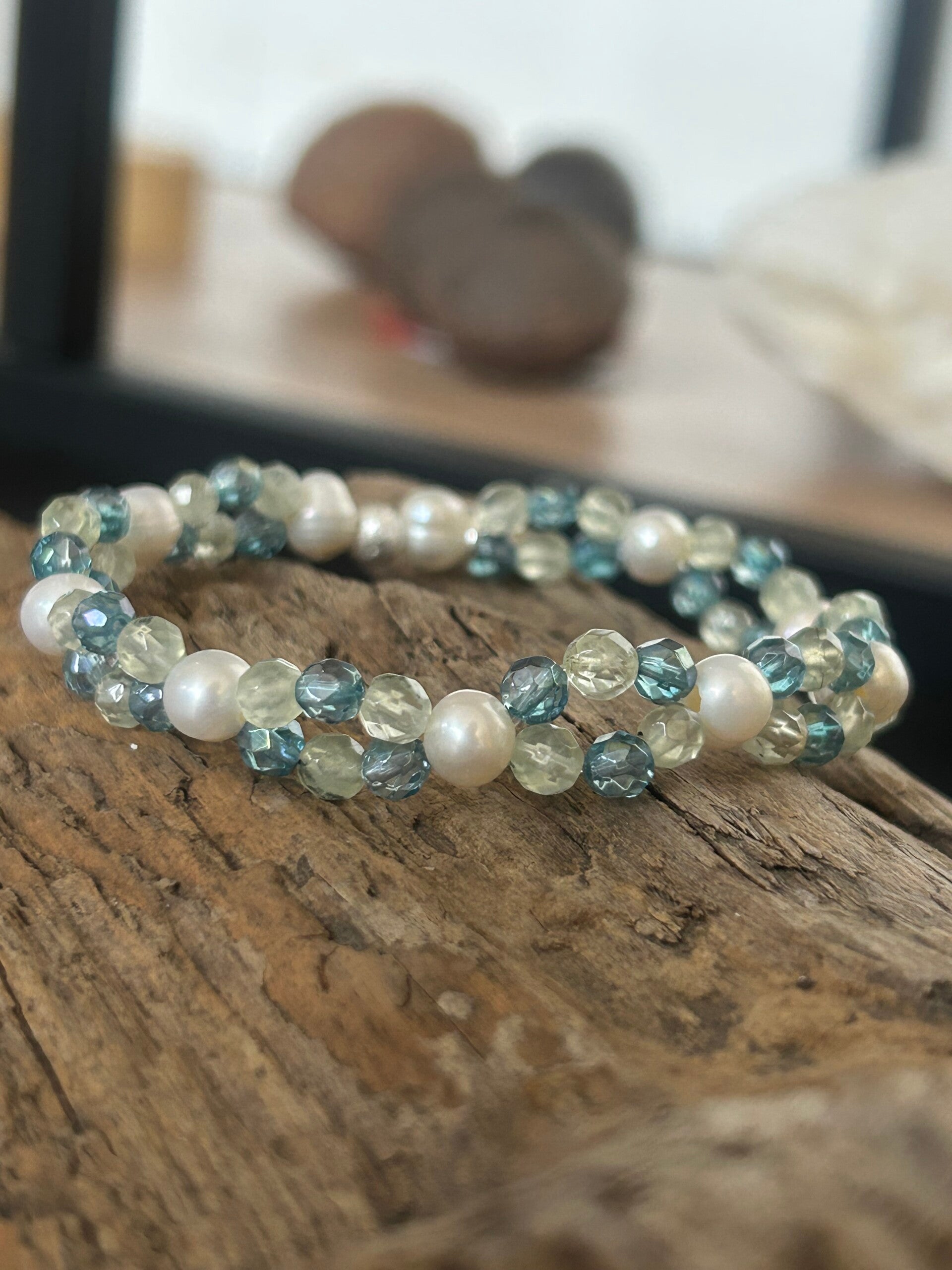 Armband - Aqua Aura, Prehnit & Süsswasserperle (A822)