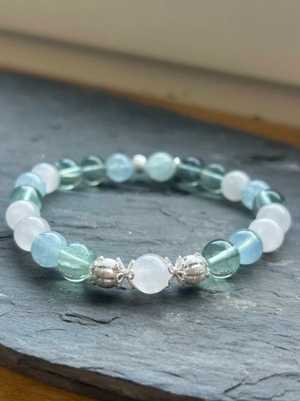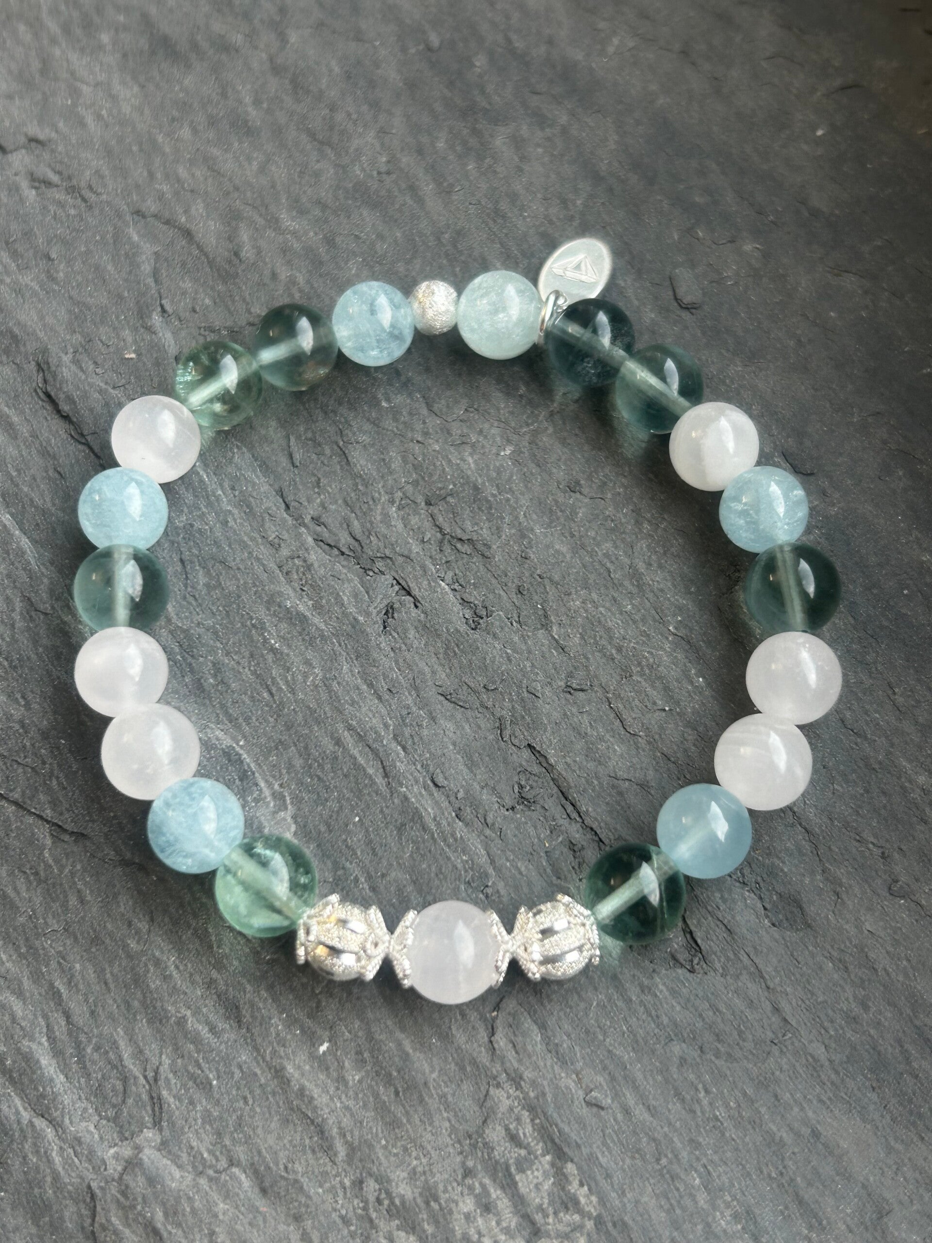 Armband - Aquamarin, Fluorit & Mangano-Calcit (A827)