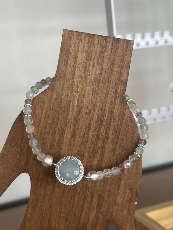 Hinweis: mit Stretch-Band (Länge 15 - 22 cm wählbar); Silber 925 Verbinder "Aquamarin" (21mm Durchmesser), Kugeln und Elemente; Kugeln 4 mm facettiert