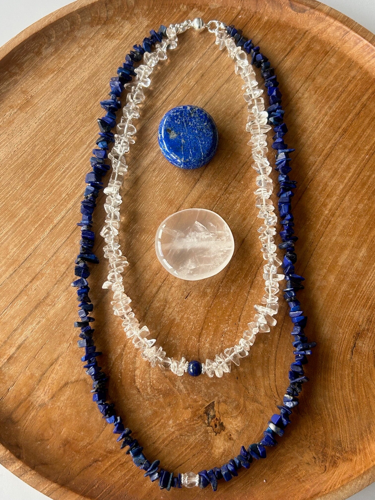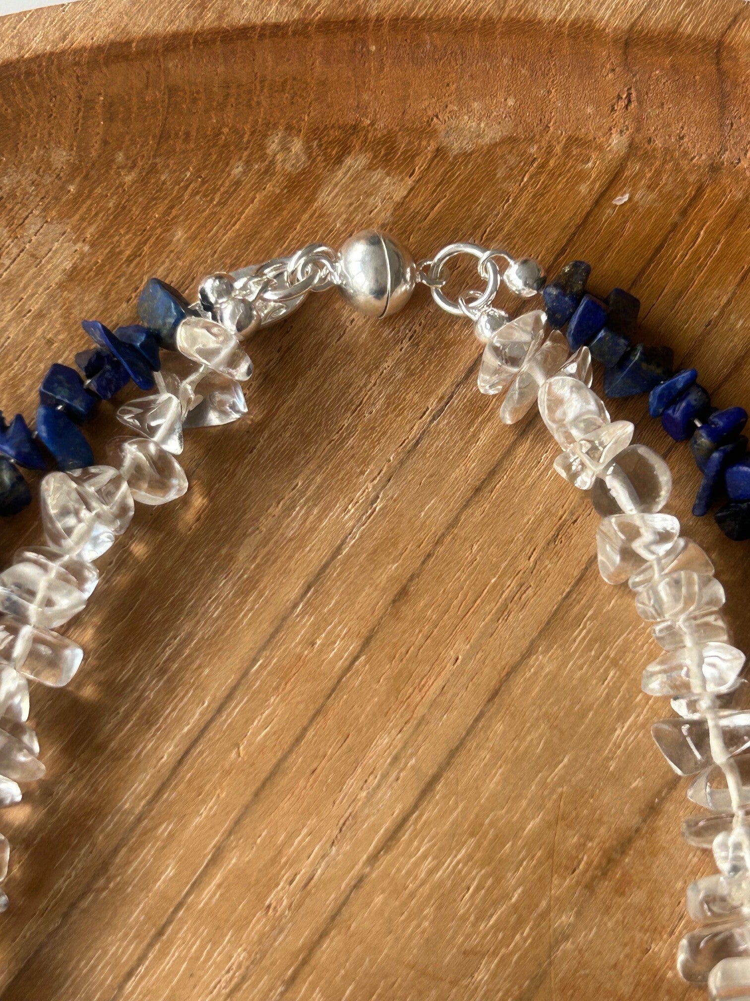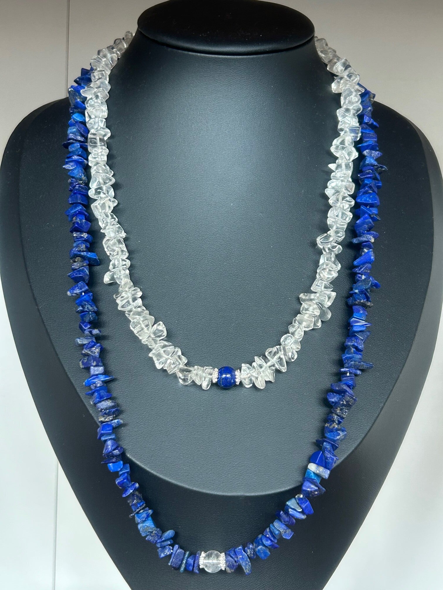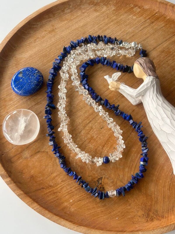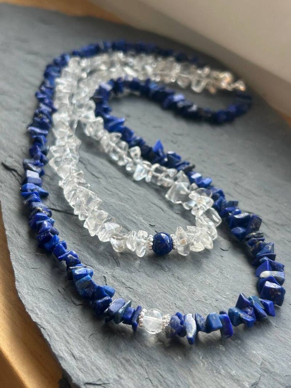 Halskette (2-fach) - Bergkristall & Lapislazuli (H615) - Einzelstück!