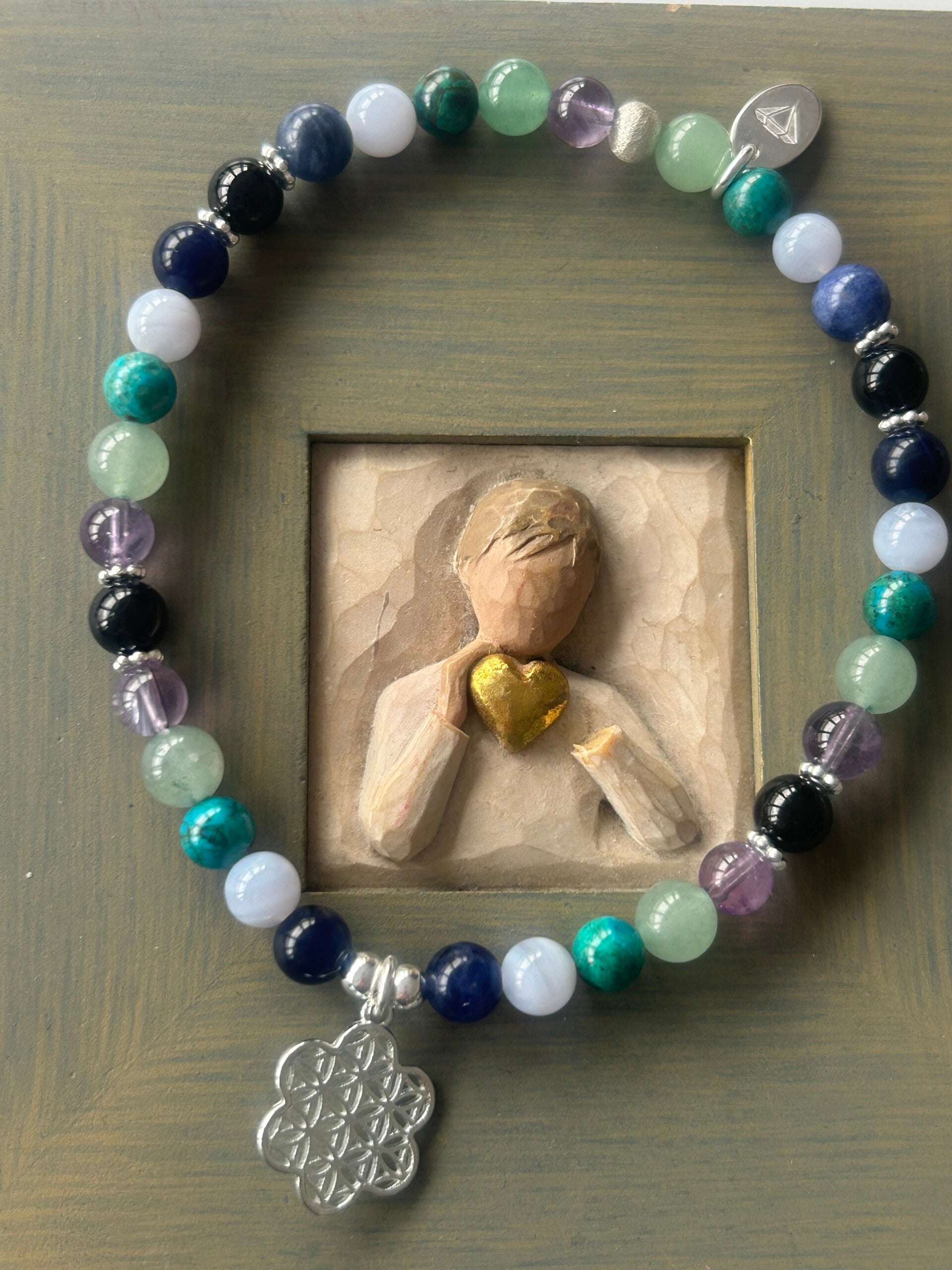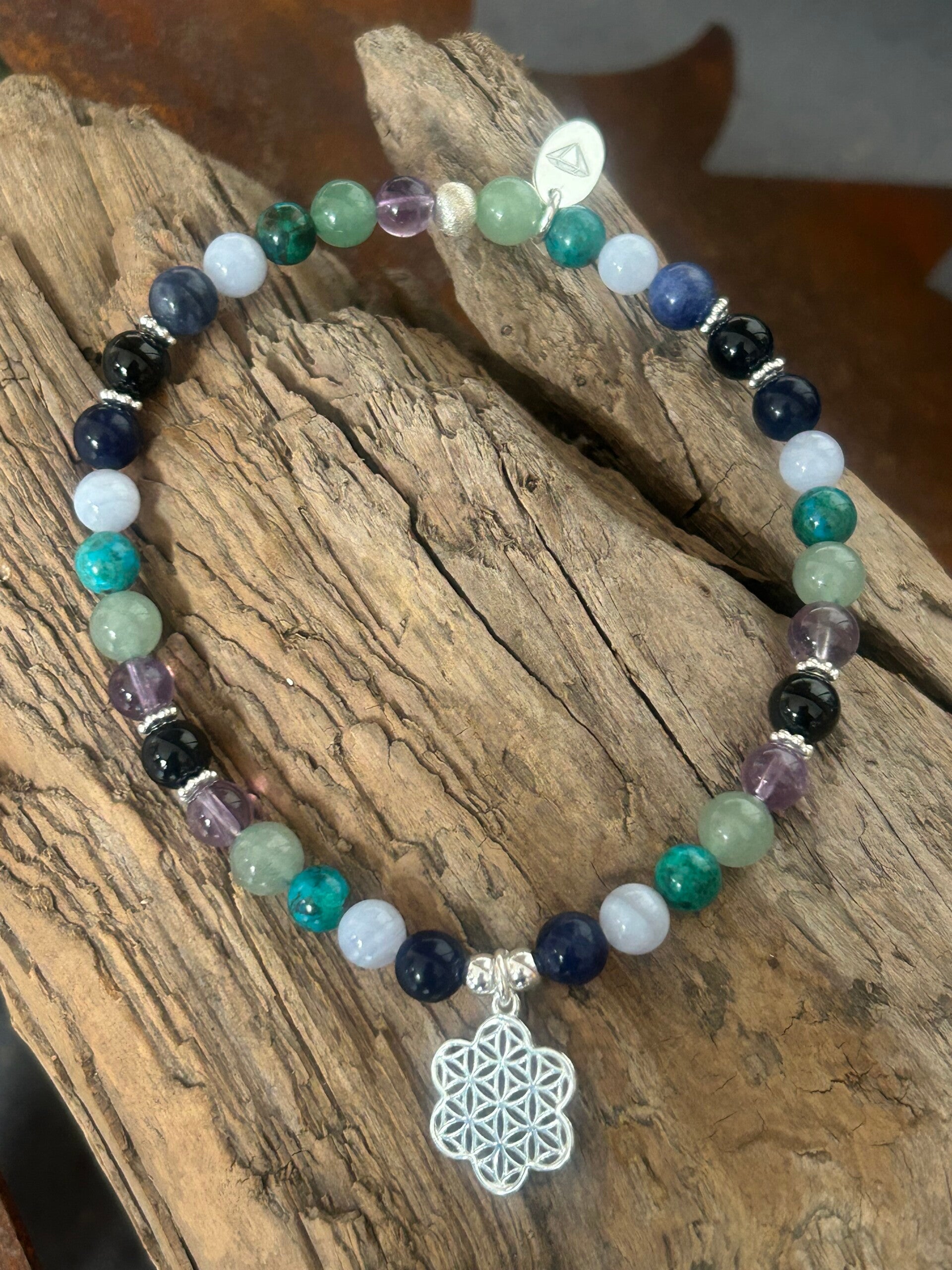 Heilsteine (Link zu Beschreibung und Wirkung): Amethyst, Aventurin-Quarz grün, Chalcedon blau Top-Qualität, Chrysokoll, Sodalith (blau), Turmalin schwarz (Schörl)