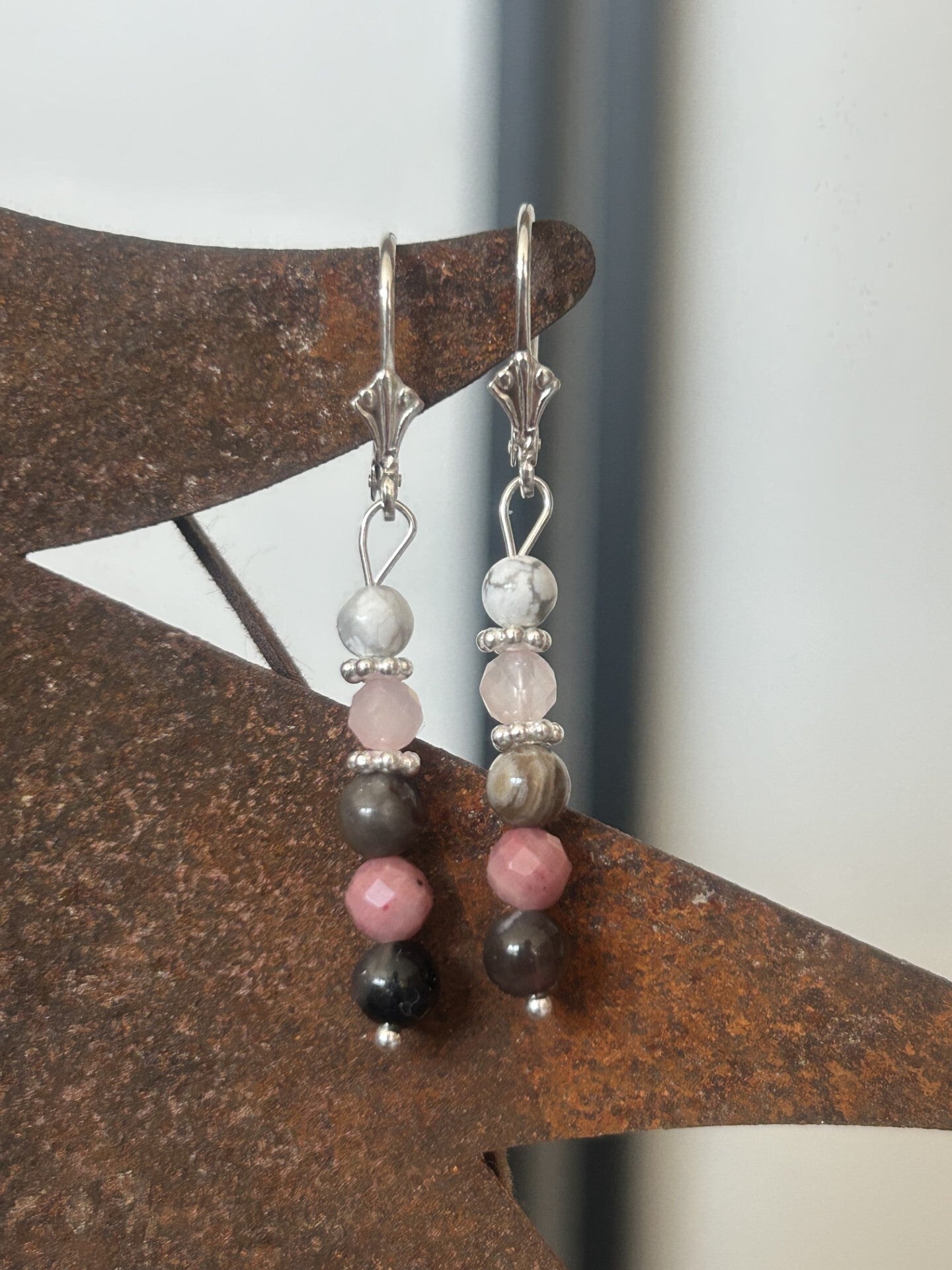 Heilsteine (Link zu Beschreibung und Wirkung): Howlith, Obsidian schwarz, Rhodonit, Rosenquarz, Versteinertes Holz