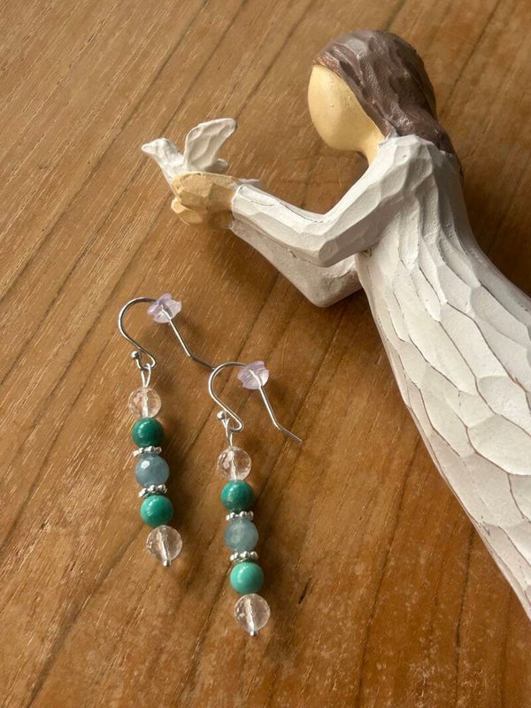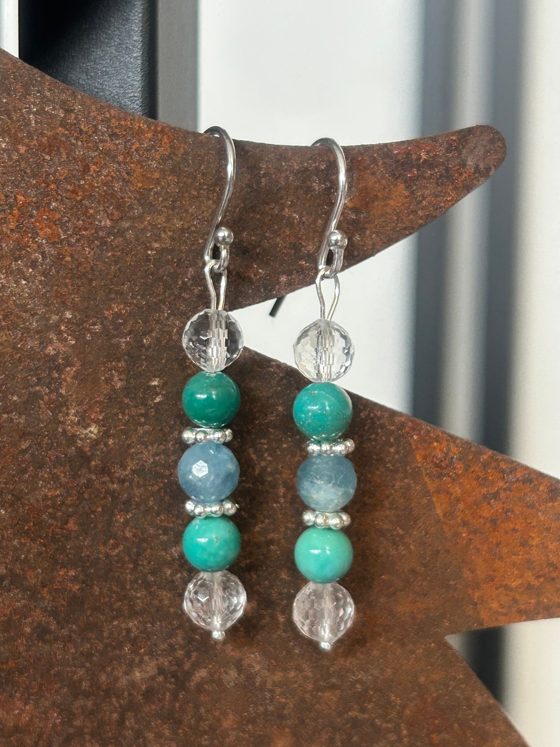 Ohrringe - Aquamarin, Bergkristall & Türkis Tibet (O581)