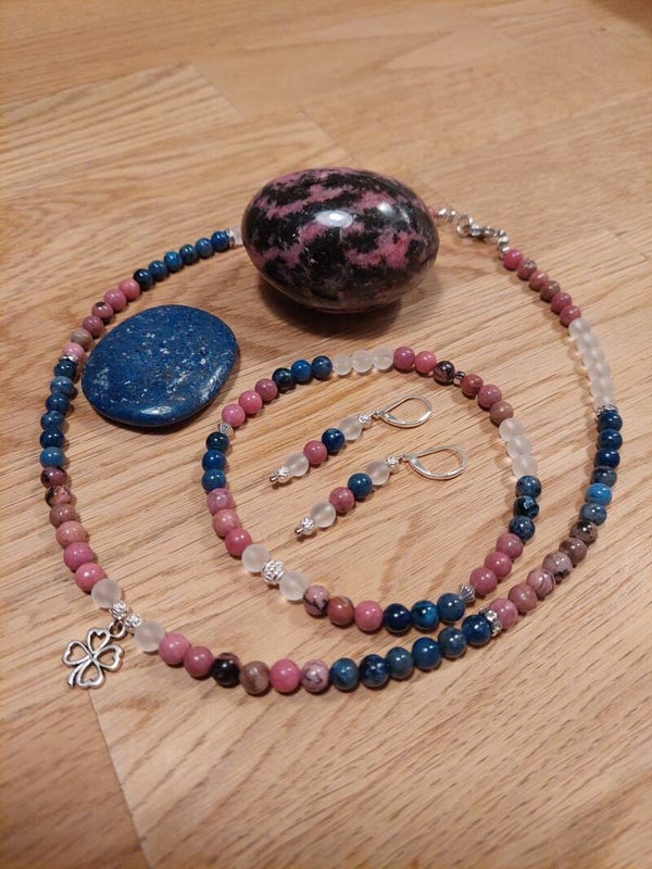 Heilsteine:Bergkristall matt, Dumortierit, Rhodonit