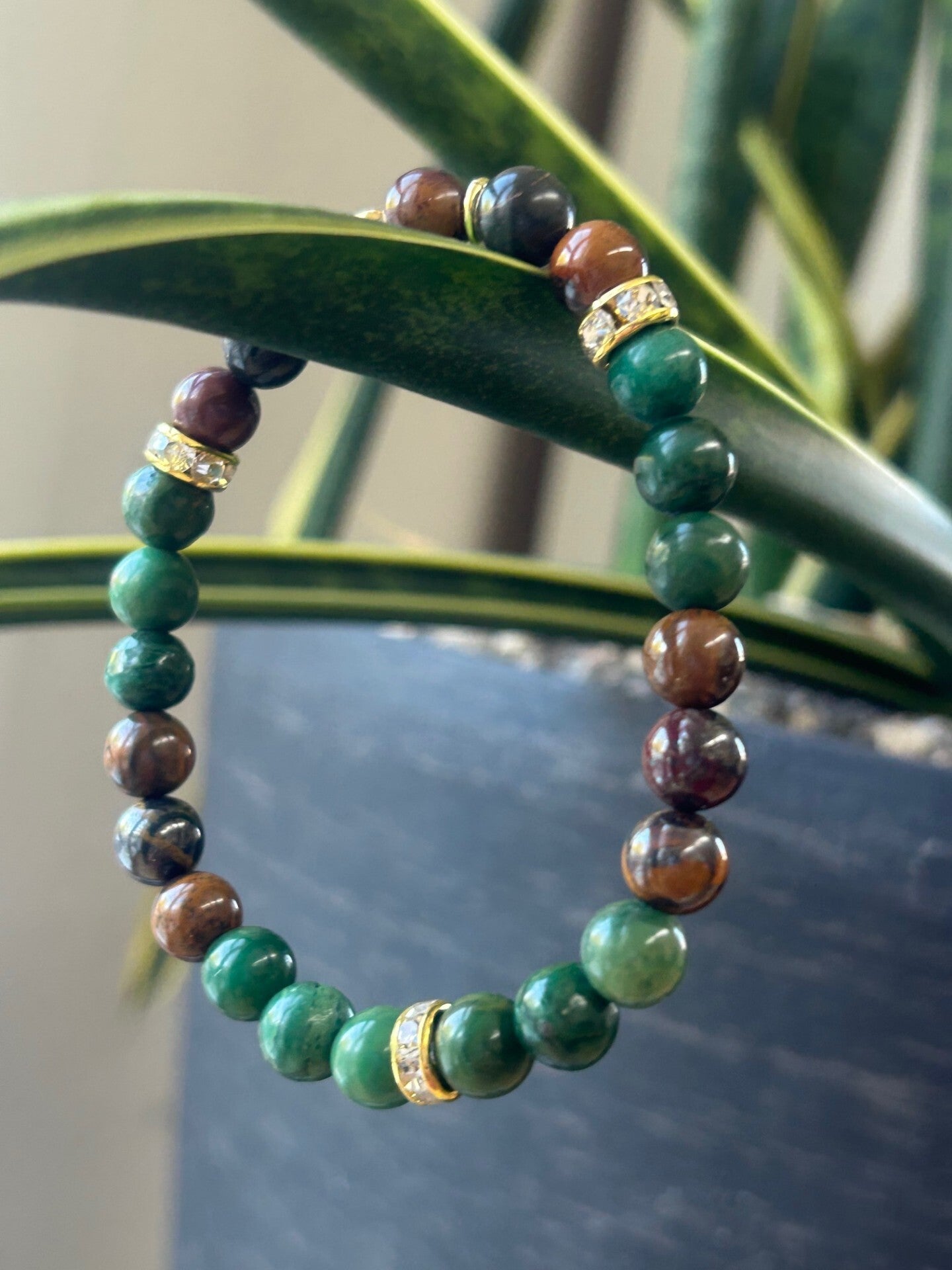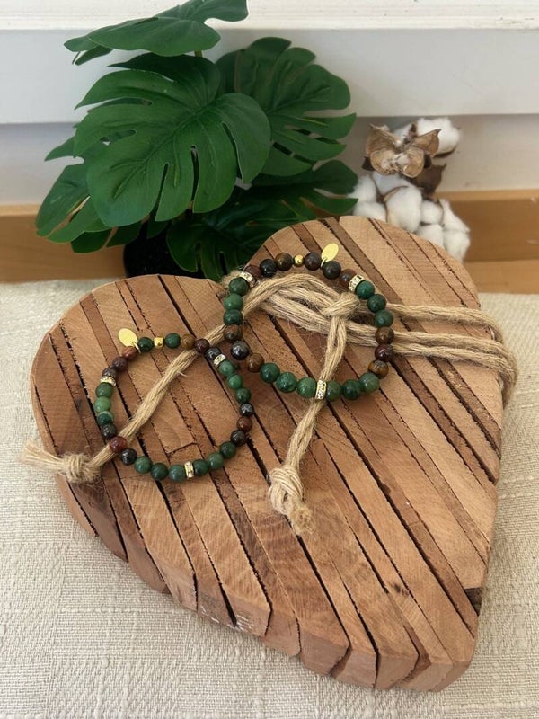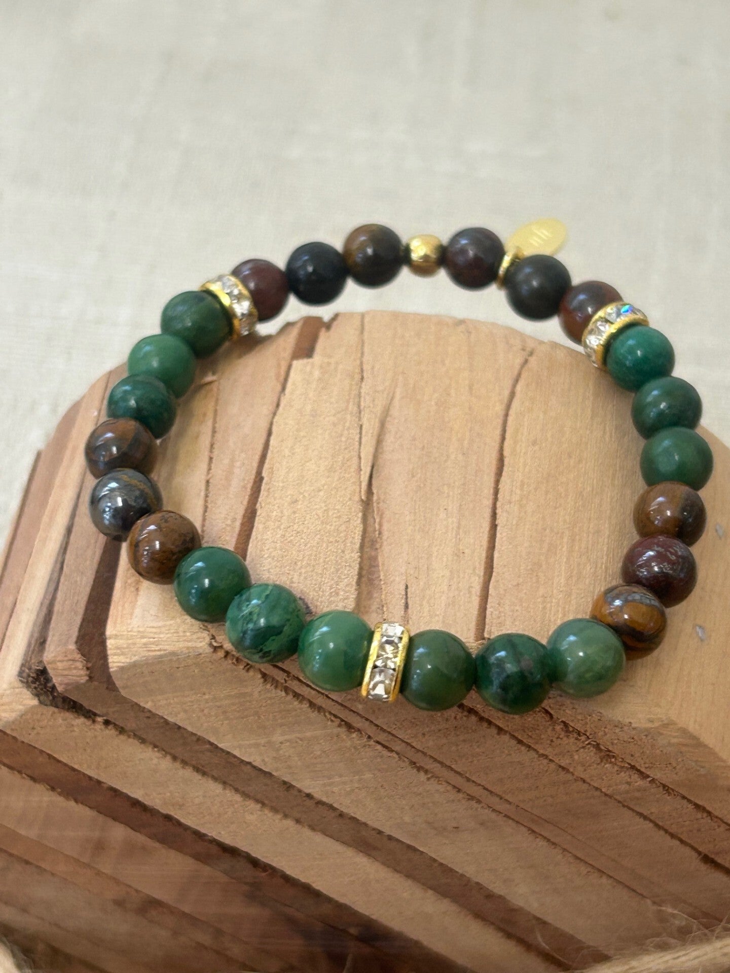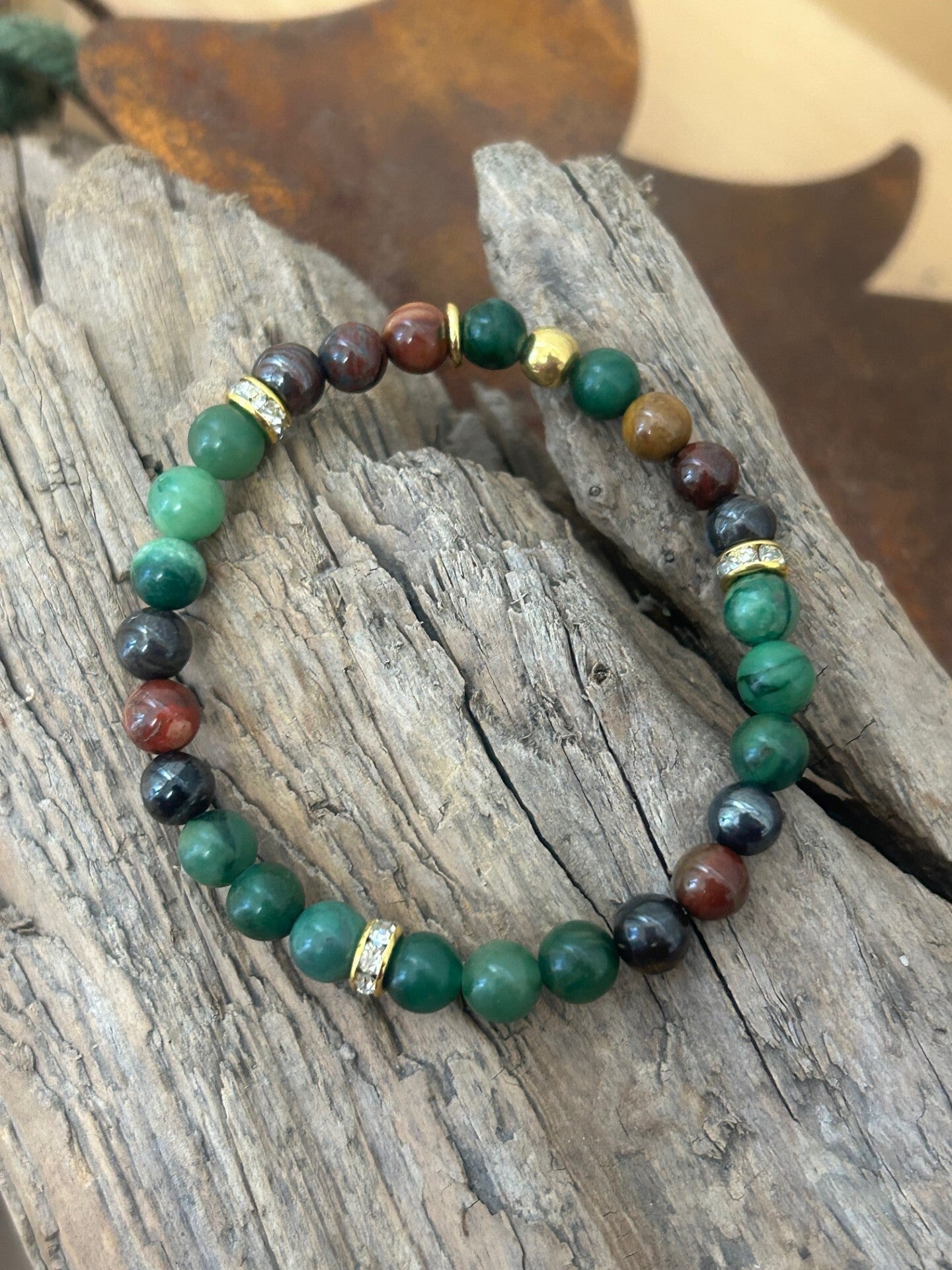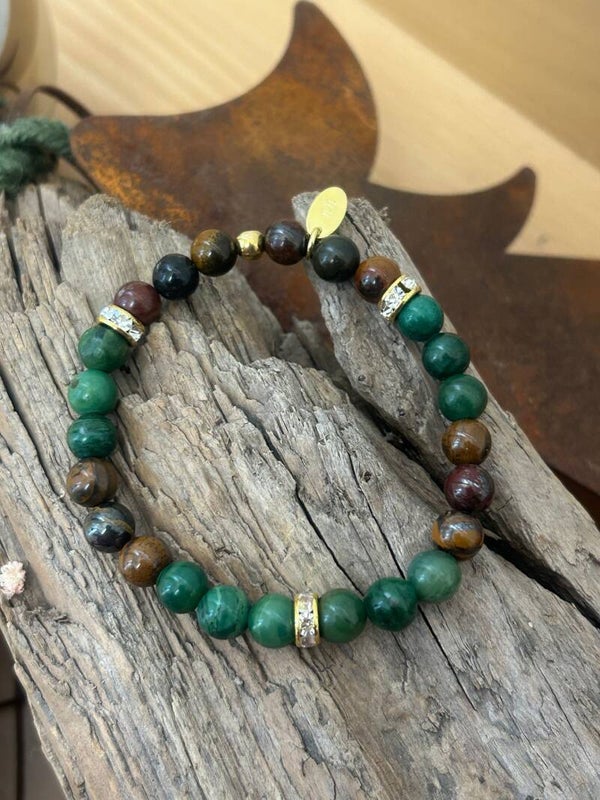 Heilsteine (Link zu Beschreibung und Wirkung): Prasem (Jade Afrika), Tigereisen