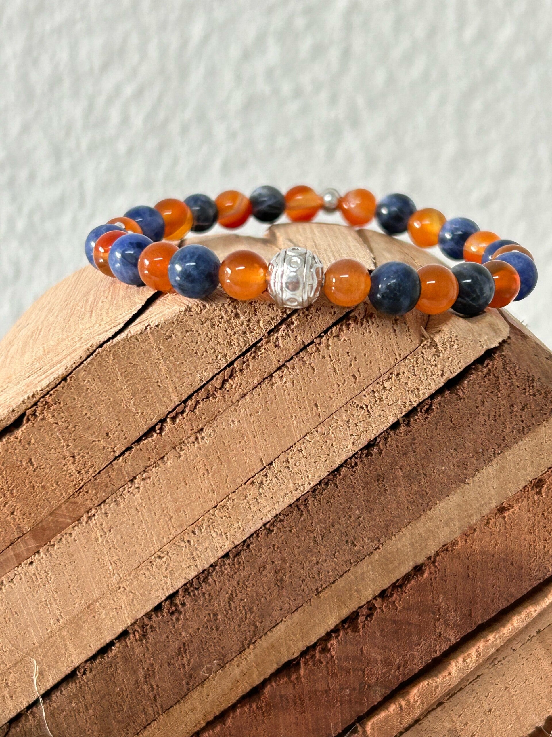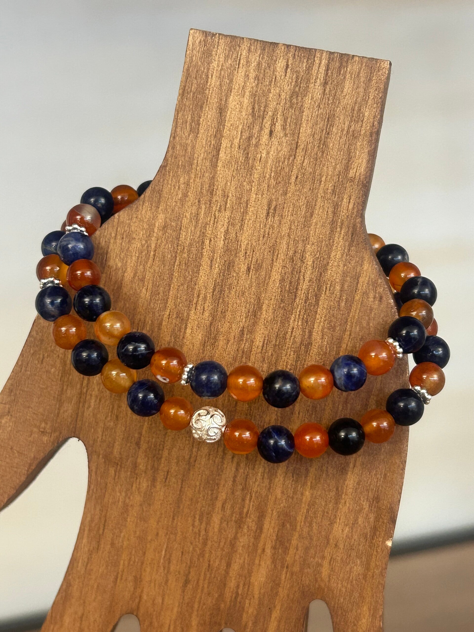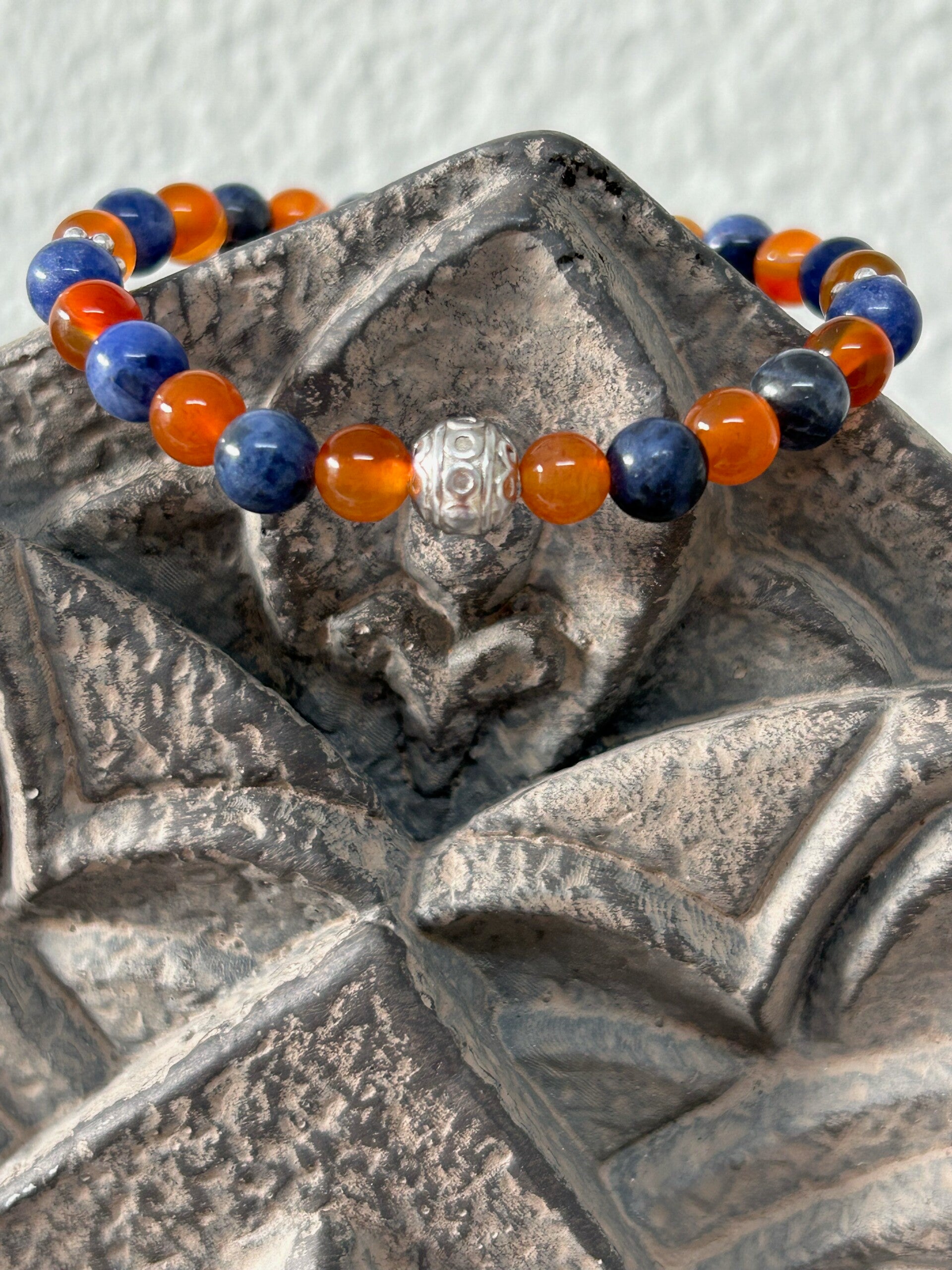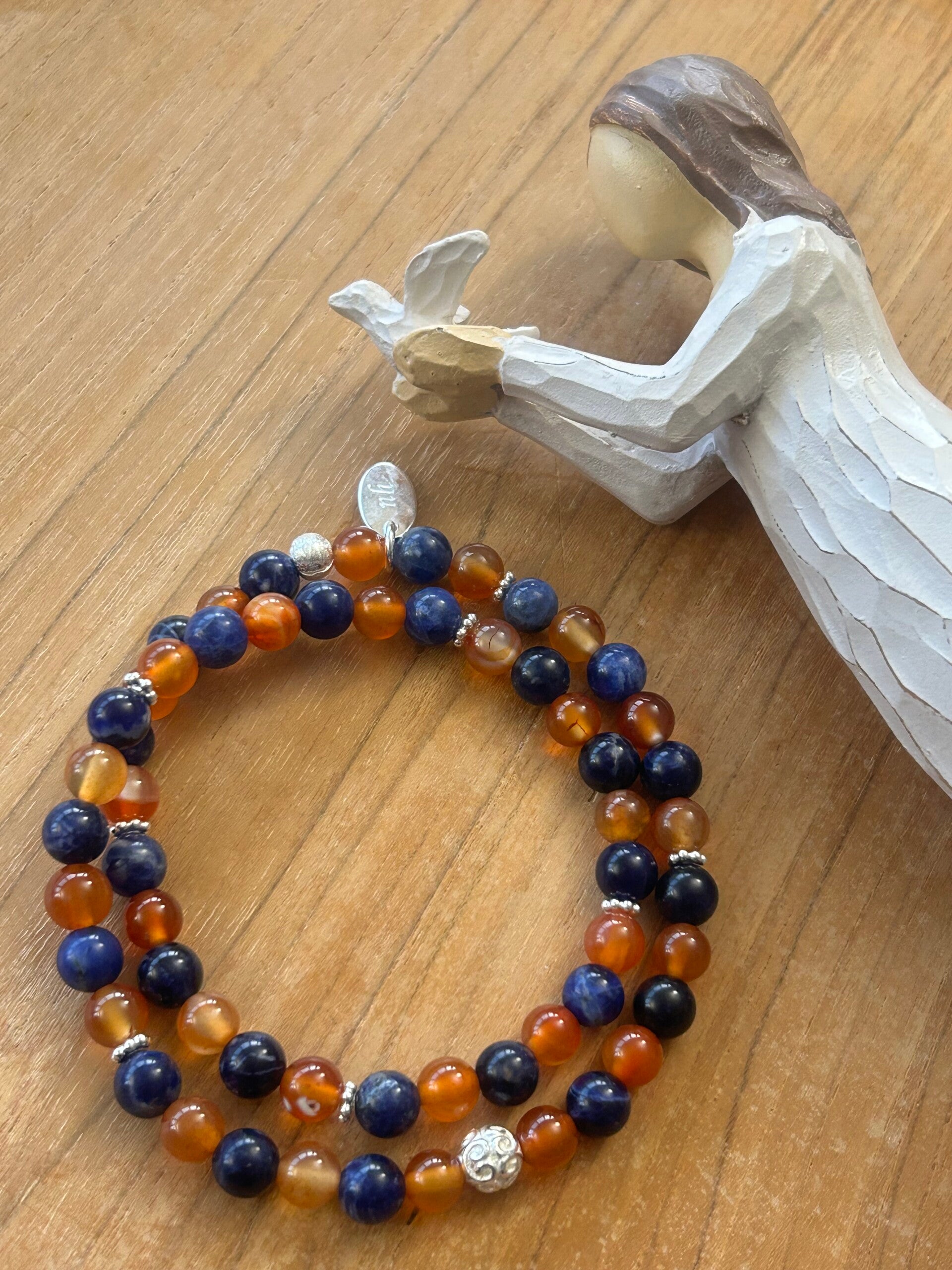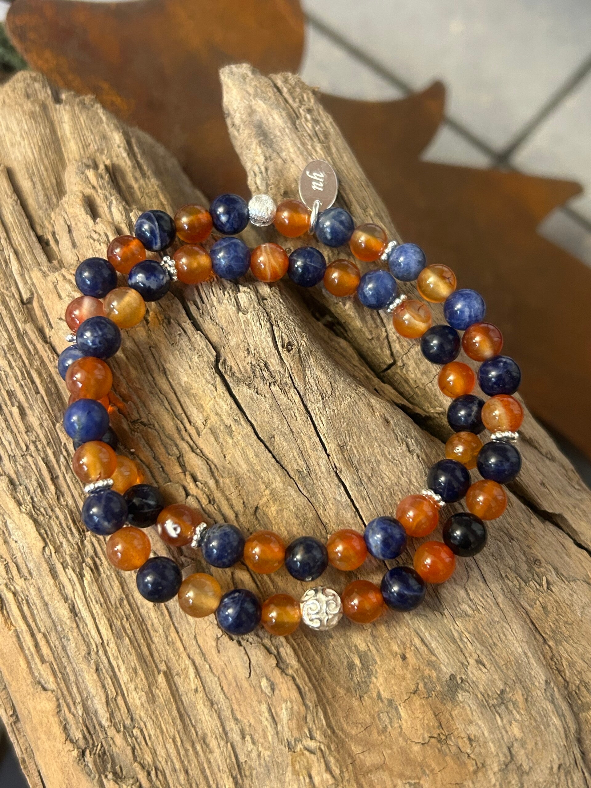 Heilsteine (Link zu Beschreibung und Wirkung): Karneol, Sodalith (blau)