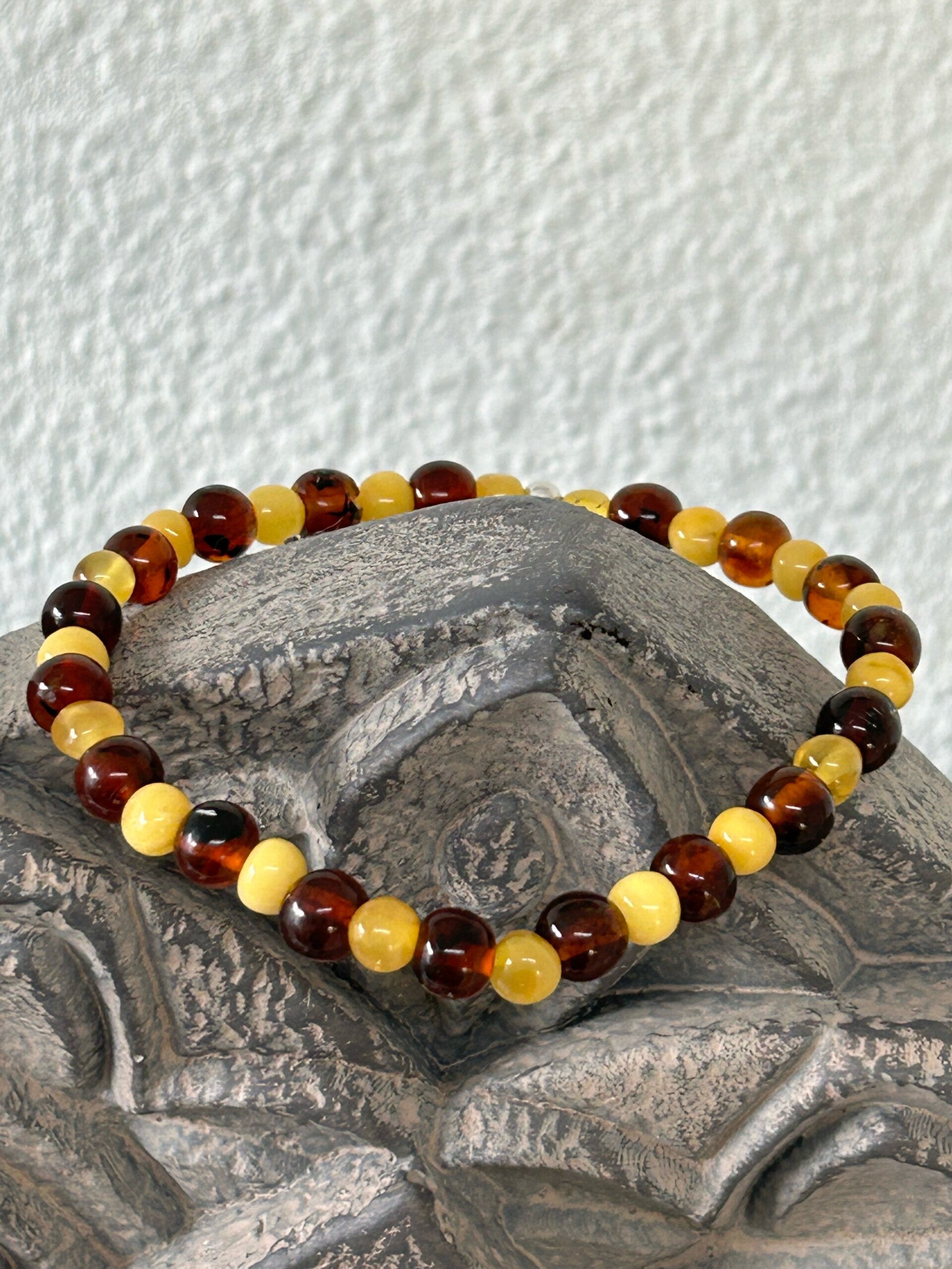 Bernstein/Bernstein Barock: hilft bei juckender Haut, Schuppenflechte, Asthma, Keuchhusten; erleichtert das Zahnen bei Kleinkindern; bessert kalte Füsse und Hände; lindert Grippe mit hohem Fieber und starken Kopfschmerzen; vermittelt Fröhlichkeit und Sorglosigkeit; fördert die Kreativität