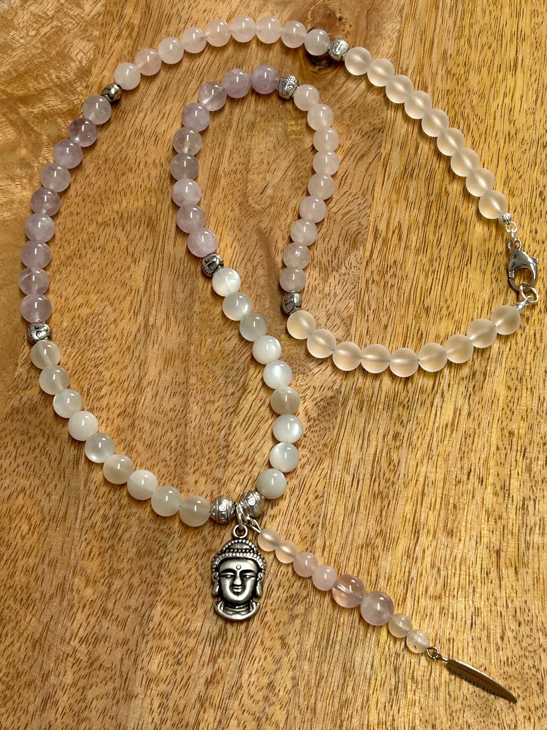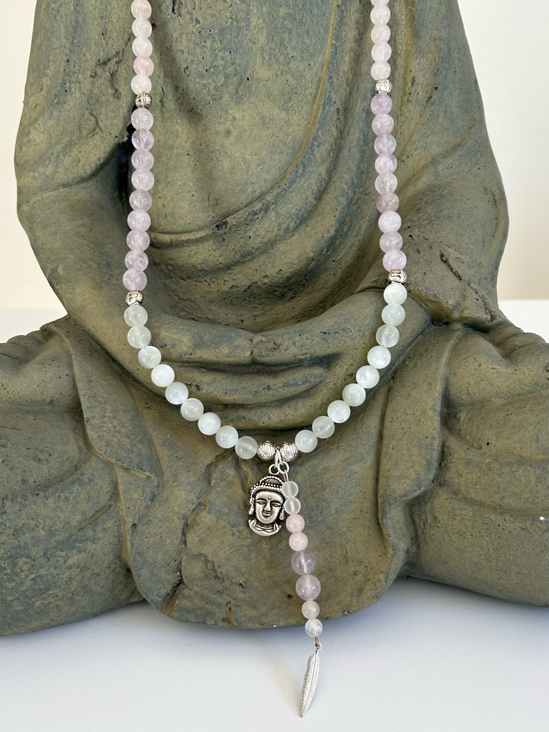 Länge: 65cm; mit Silber 925 Buddha, Feder, kleinen Buddhas und Zwischenteilen