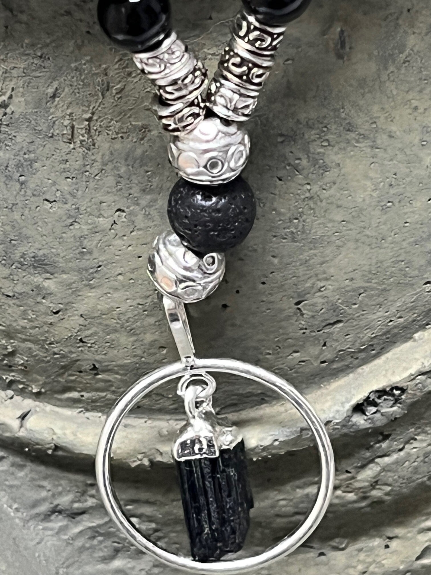 Länge auf dem Bild: 53cm (Deine Wunschlänge in den Kommentar eintragen und entsprechende Preisklasse wählen!); mit Silber 925 Zwischenteilen; Anhänger Ring Turmalin