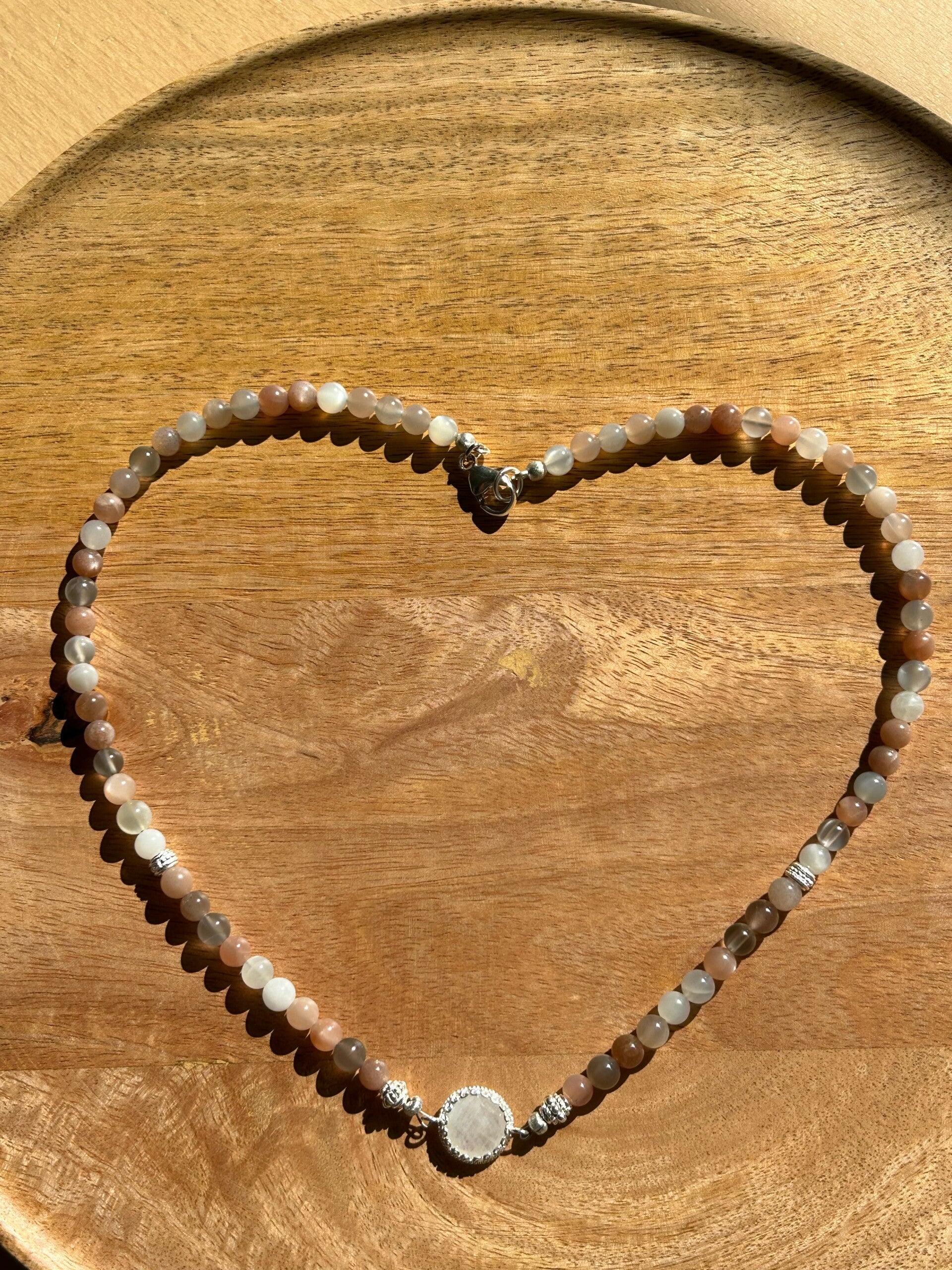 Mondstein bunt / multicolor: beruhigt gereizte Haut; straft das Gewebe; wirkt beruhigend und erdend; verbessert das Gefühl für die Bedürfnisse des Körpers; stärkt die Identifikation mit dessen Vorgängen